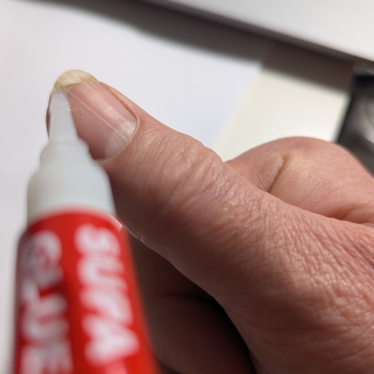 Some of us guitar players like a bit of fingernail. on our right hands. Especially when plucking nylon strings, it brings out the higher frequencies. Nylon can be mellow and dull on just fleshy fingertips. As much as you try not to break fingernails - doing things left handed, avoiding some activities which are known fingernail crackers - it still happens, generally at the worst possible timing. I've written about nail repair before but now I've got some science to improve the process! And pictures!